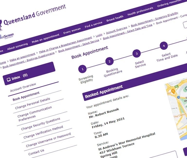 I conducted a usability test with 4 users aged 25-50 years old. Participants were asked to book an appointment in one of the Queensland facilities. From there, participants were encouraged to express their feelings on what they liked, disliked or can be improved as they browsed the site.